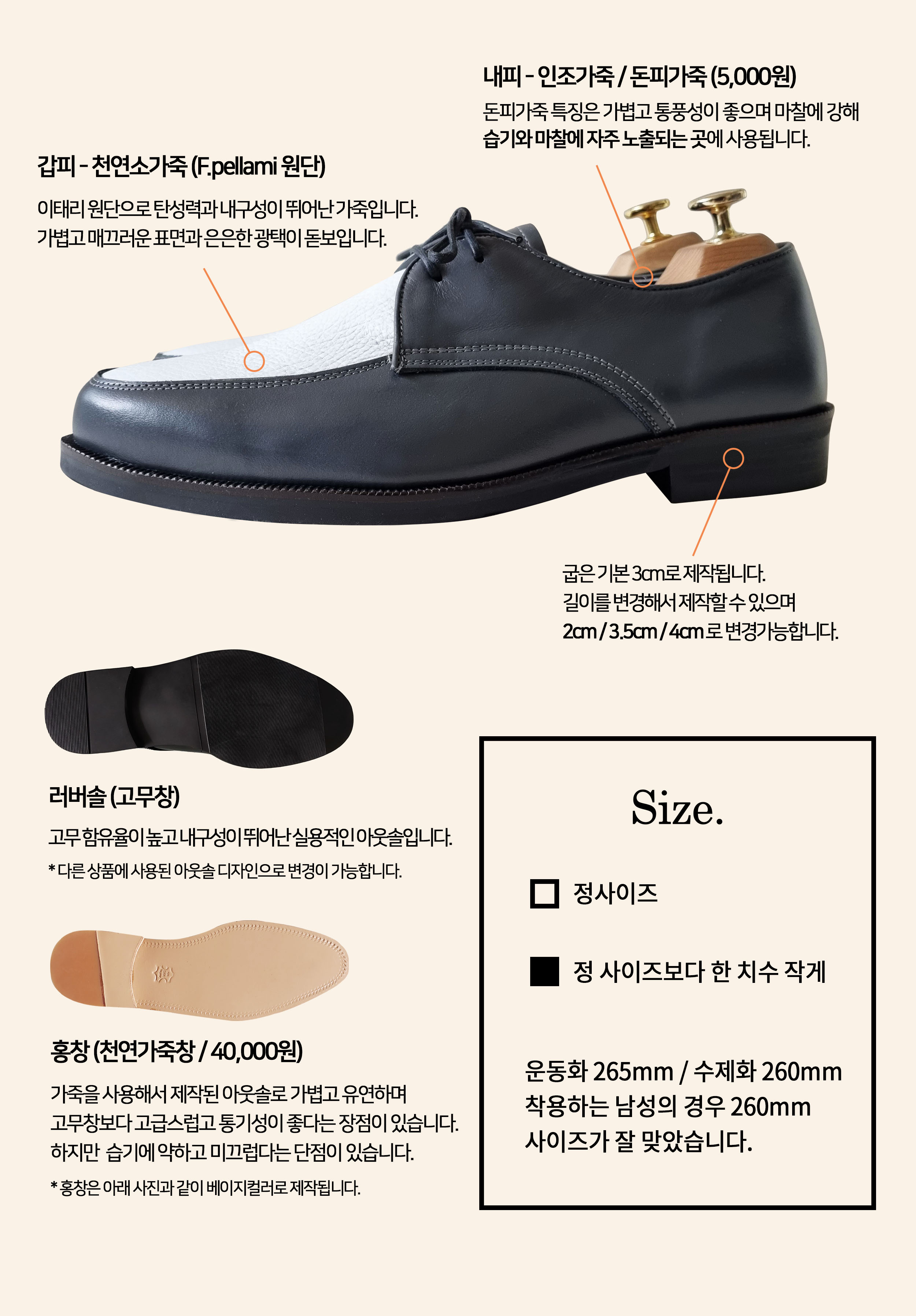 이태리 소가죽으로 투 아일렛 더비슈즈