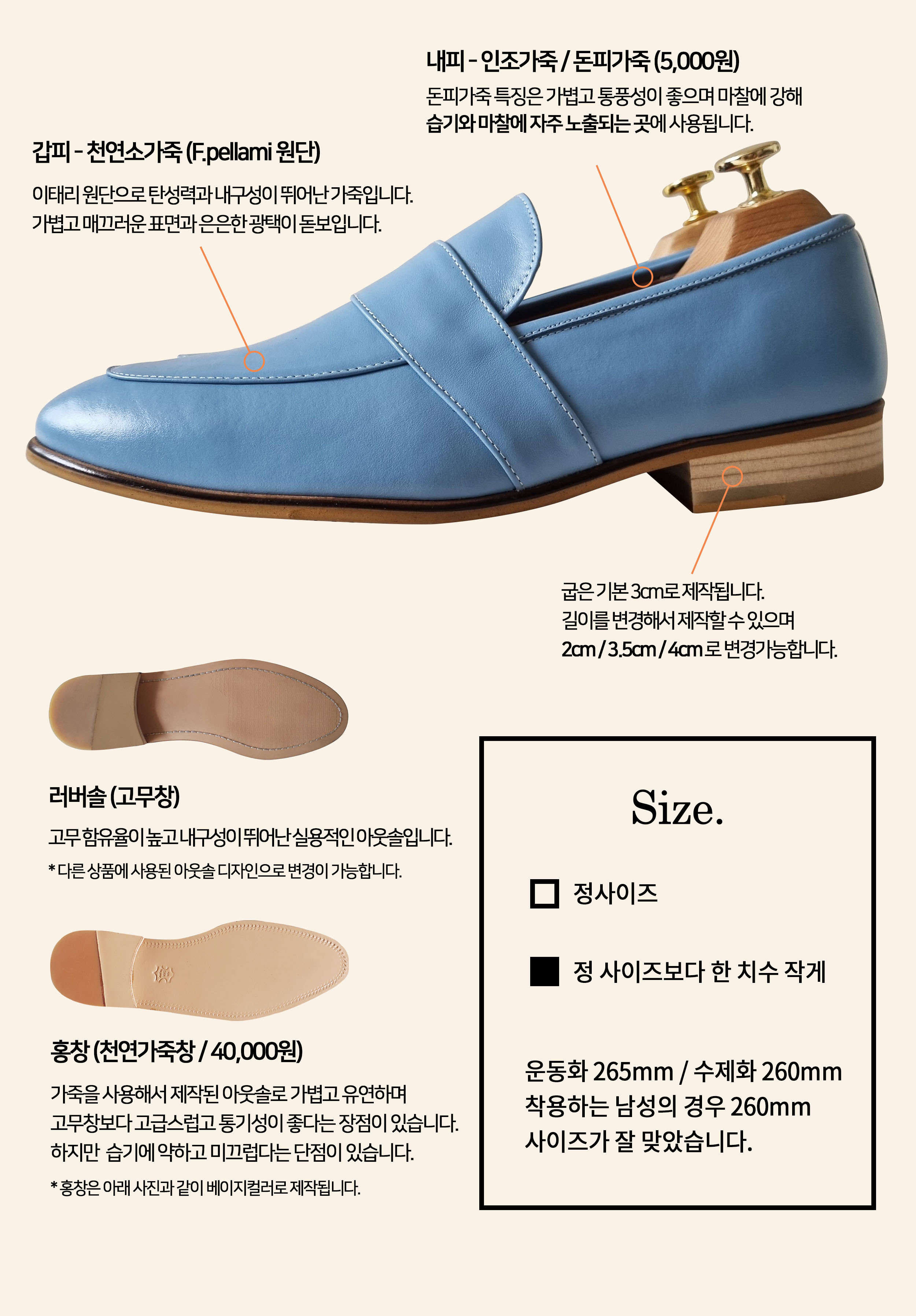 클래식 밴드 로퍼 C397FL 스카이블루 (이태리 소가죽)